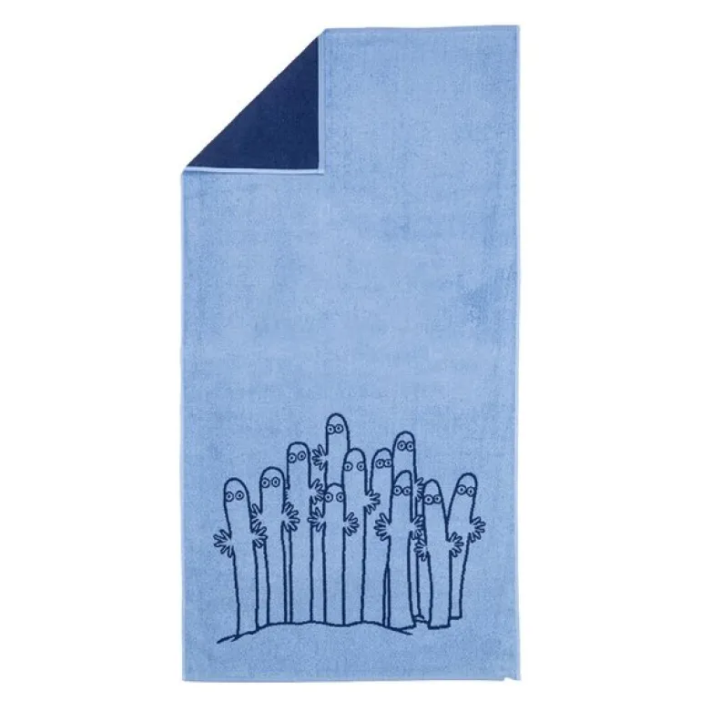 MoominArabia Mummi badehåndkle 70×140 cm Hattifnatt gir en mystisk og spennende følelse etter hvert bad. Svøp deg inn i dette myke håndkleet og hold utkikk etter de gåtefulle Hattifnattene, som vandrer i store flokker gjennom Mummidalen. Disse mystiske skapningene elsker tordenvær og blir ladet opp med elektrisitet fra lyn. Hattifnattene vokser fra små frø, men bare når de sås på midtsommerkvelden. Laget av 100% økologisk bomull, er dette håndkleet både skånsomt mot huden og miljøvennlig. Perfekt for å tilføre litt Mummi-magi og en dose eventyr til din badeopplevelse.