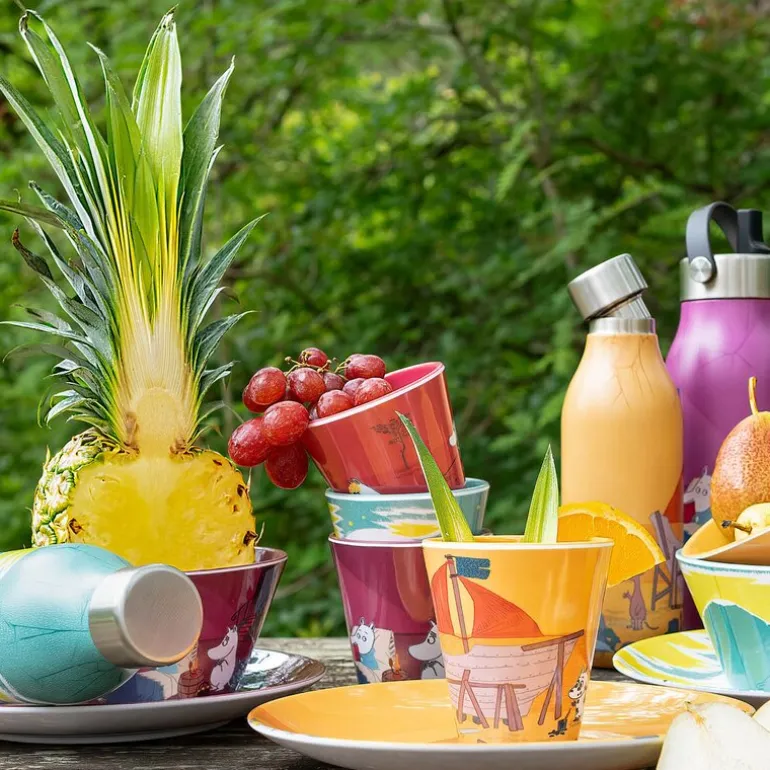 Mummi drikkebeger 25 cl «Moomin and moon» fra Modern House er et sjarmerende tillegg til ethvert måltid, enten det nytes hjemme eller ute i det fri. Drikkebegeret er laget i slitesterkt melamin, et kraftig plastmateriale som tåler en støyt og er ideelt for både små og store eventyr. Med sitt friske design, levende farger og de ikoniske Mummi-figurene, skaper den en leken og koselig atmosfære rundt bordet.