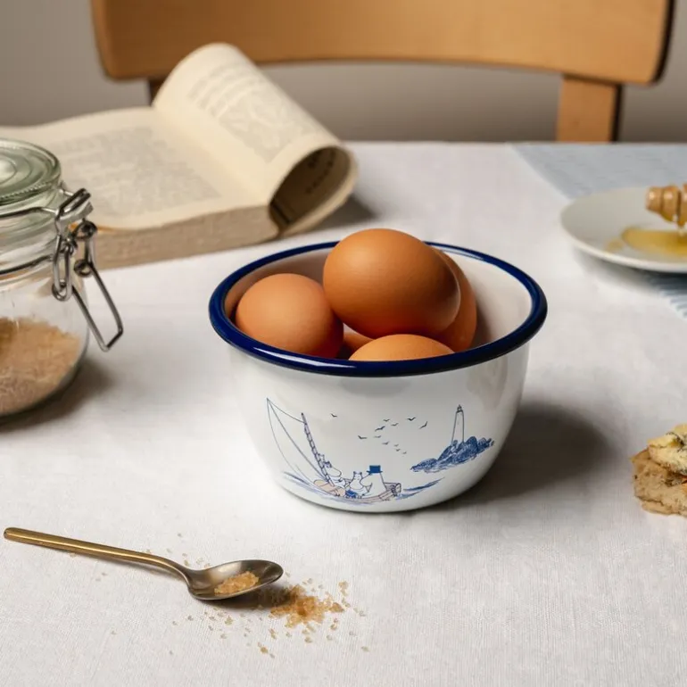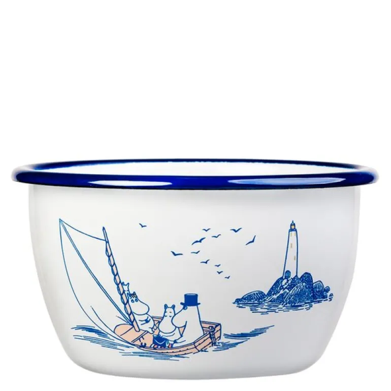 Muurla forener finsk design og funksjonalitet i produkter som er skapt for å brukes og nytes i hverdagen. Denne emaljeskålen er perfekt for servering eller matlaging, og dens maritime motiv gjør den til en hyggelig detalj på bordet eller som gave til en som elsker Mummi og tidløst design.