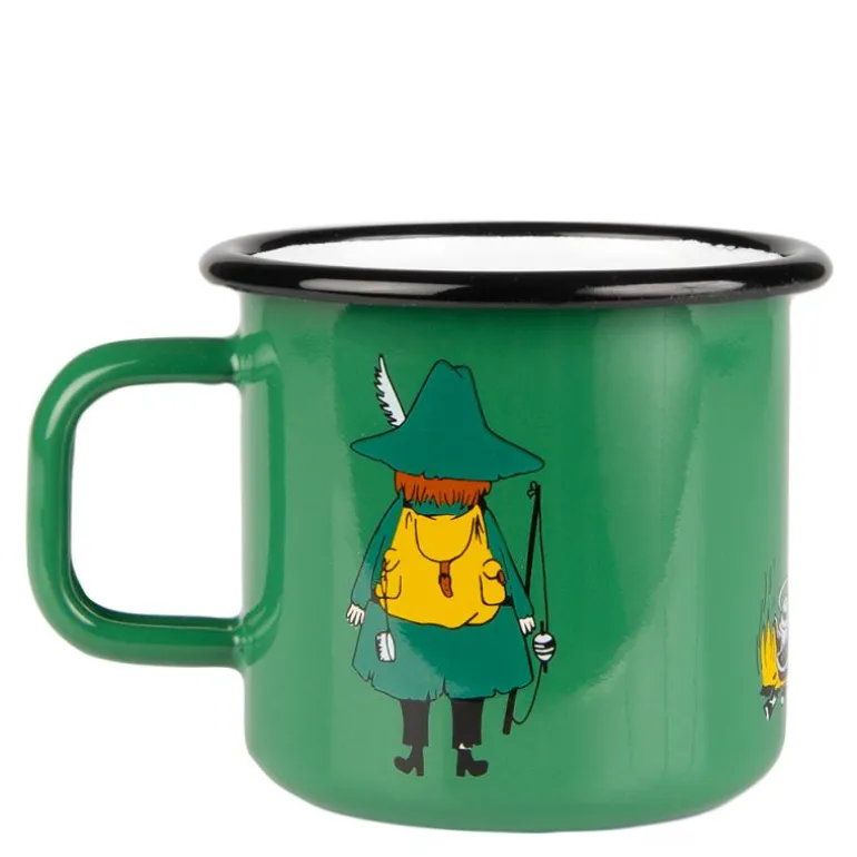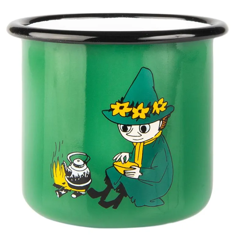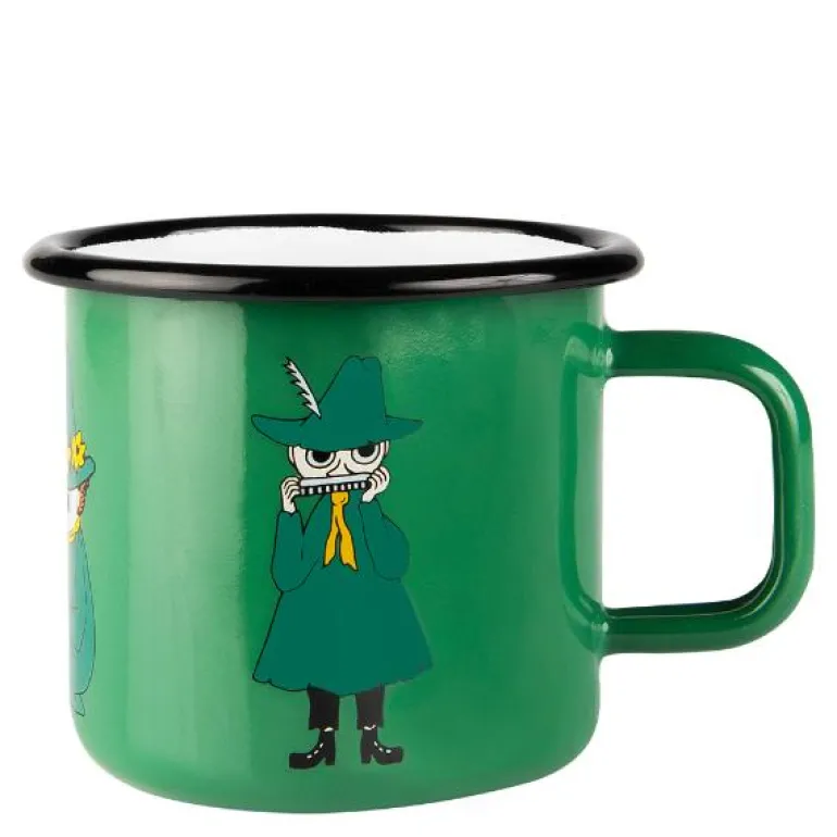 Mummi emaljekopp på 37 cl med Snusmumrikken i en beroligende grønn farge er en kopp som inviterer til ro og refleksjon, akkurat som Snusmumrikken selv. Perfekt for en kopp kaffe eller te når du vil ta et øyeblikk for deg selv. Den myke kantovergangen gir en behagelig drikkeopplevelse, og koppen er kompatibel med komfyr, induksjonsplate, ovn og oppvaskmaskin. Den er imidlertid ikke egnet for mikrobølgeovn. Som håndlaget produkt har hver kopp sitt unike særpreg.