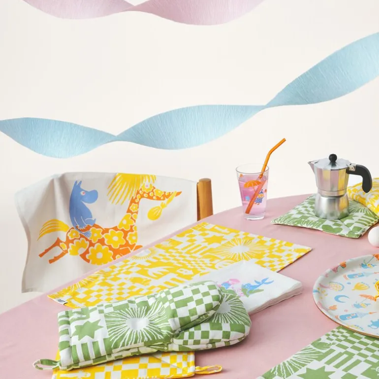 Mummi gryteklut 23×23 cm, 2 stk «Fest gul» fra Moomin Arabia tilfører kjøkkenet en herlig sommerstemning. Inspirert av tidlige mummimønstre fra 1950-tallet, bringer dette settet frem nostalgiske minner og sprudlende detaljer som hyller de elskede mummitrollene. Det lekne designet gir liv og glede til kjøkkenets atmosfære.