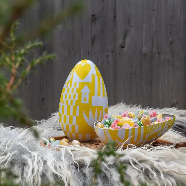 Moomin Fest påskeegg på 22 cm i gul fra Modern House er det perfekte tilskuddet til årets påskefeiring. Med friske og sjarmerende motiver fra Moomin Party-kolleksjonen bringer dette påskeegget både glede og nostalgiske minner til bordet. Produsert i slitesterkt tinn, kan egget brukes år etter år, noe som gjør det til et dekorativt og praktisk valg for påsketradisjoner.