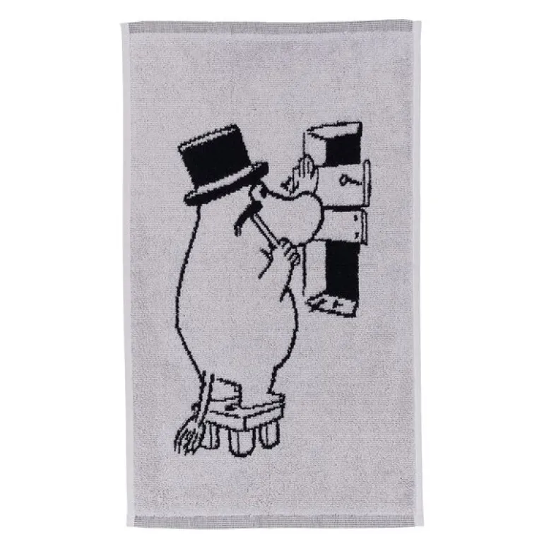 Dette myke og koselige Mummihåndkleet fra MoominArabia måler 30×50 cm og kommer i en elegant grå farge med Mummipappaen som motiv. Mummipappaen er konstant opptatt med å fikse noe rundt huset eller i Mummidalen – håndverk er hans superkraft. Kanskje en bro må fikses etter en storm, eller det er på tide å forberede seg på vinteren. Mummipappa er alltid klar med sine pålitelige verktøy. Både praktisk og stilig fanger dette håndkleet essensen av Mummipappas utrettelige arbeidsmoral. Perfekt for å legge til et snev av Mummidalens eventyr til hjemmet ditt.