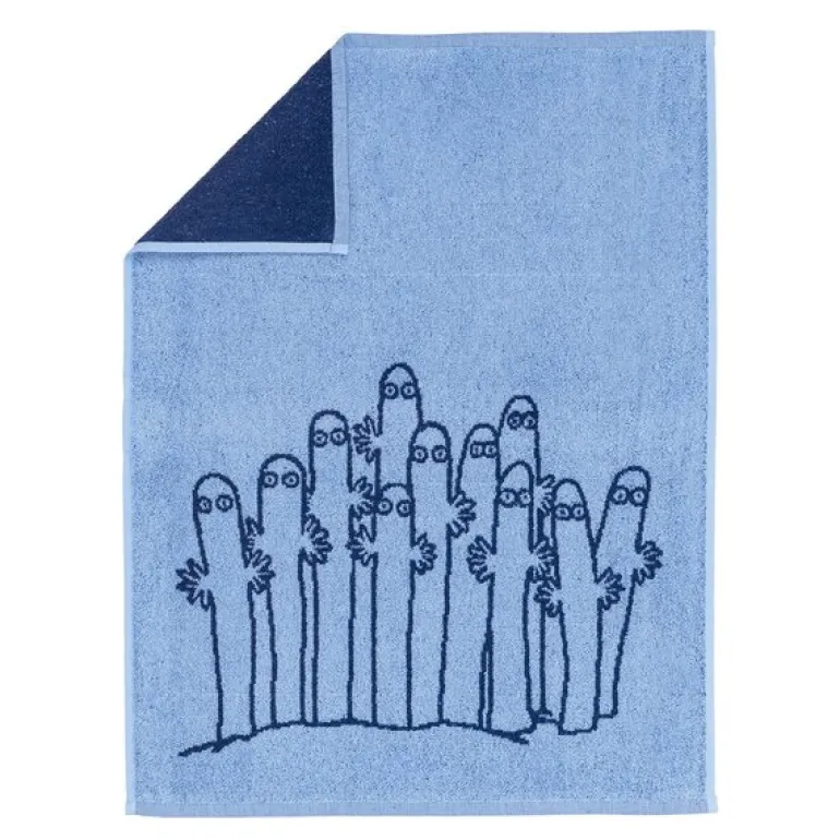 MoominArabia Mummi håndkle 50×70 cm Hattifnattene gir en mystisk og spennende følelse til din daglige rutine. Nyt dette myke og koselige Mummi-håndkleet, men hold utkikk etter de gåtefulle Hattifnattene fra Mummidalen. Disse skapningene beveger seg i store flokker og elsker tordenvær, hvor de lades opp med elektrisitet fra lyn. Hattifnattene vokser fra små frø, men bare når de sås på midtsommerkvelden. Dette håndkleet, med sine unike illustrasjoner, tilfører en dose magi og eventyr til ditt hjem. Hattifnattene håndkleet er både praktisk og sjarmerende, perfekt for alle Mummi-elskere.