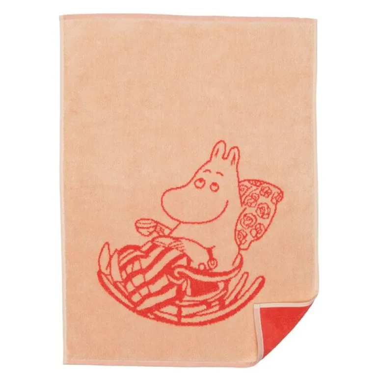 MoominArabia Mummi håndkle 50×70 cm Mummimamma fersken gir en myk og koselig følelse til din daglige rutine. Dette håndkleet er prydet med en sjarmerende historie om Mummimamma, som bygger en steinhage. Når uforsiktige pirater ødelegger hagen, får Mummimamma dem til å bygge den opp igjen, selv om det går sakte fordi piratene helst vil leke. Laget av 100% økologisk bomull, er dette håndkleet både skånsomt mot huden og miljøvennlig. Med sine sjarmerende illustrasjoner av Mummimamma, tilfører dette håndkleet en varm og leken touch til ditt hjem. Perfekt for alle som elsker Mummi-universet og ønsker litt ekstra magi i hverdagen.