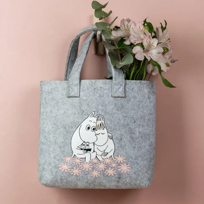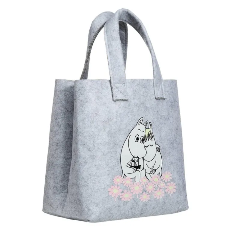 Mummi handlenett i størrelsen 14x25x26 cm med det sjarmerende «Sammen»-motivet av Mummitrollet og Snorkfrøken i en stilren grå farge er både praktisk og slitesterkt. Shoppingvesken er laget av resirkulerte PET-flasker, noe som gir den en solid og funksjonell kvalitet som passer til daglige ærend eller små utflukter.