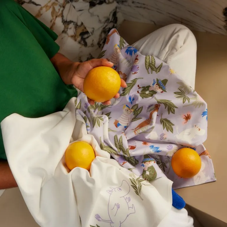 MoominArabia Mummi kjøkkenhåndkle 50×70 cm, 2 stk lilla og offwhite, bringer vårens magi til kjøkkenet ditt. Våren har ankommet Mummidalen, og beboerne gleder seg over den blomstrende naturen rundt seg. Blomsterdetaljene på disse kjøkkenhåndklærne understreker Mummitrollenes sterke tilknytning til naturen, og det klassiske mønsteret passer perfekt både til hverdager og festlige anledninger. Disse håndklærne kombinerer funksjonalitet med en sjarmerende design, og gir en frisk og fargerik touch til ditt kjøkken. Praktiske og dekorative, perfekte for alle som elsker Mummi-universet.