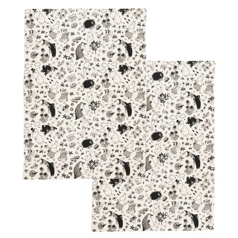 MoominArabia Mummi kjøkkenhåndkle 50×70 cm, 2 stk offwhite, er et sjarmerende tillegg til kjøkkenet ditt. Med selskap hos Mummitrollene kan du nesten kjenne duften av de delikate rettene og den festlige stemningen. Disse kjøkkentekstilene passer perfekt både til hverdager og til spesielle anledninger. De diskré mønstrene i svart og beige fremhever de elskede karakterene fra Mummidalen på en elegant måte. Laget av høykvalitets materialer, er disse kjøkkenhåndklærne både funksjonelle og stilige. Et lett valg for Mummi-elskere som ønsker å tilføre en touch av Mummi-magi til kjøkkenet sitt.