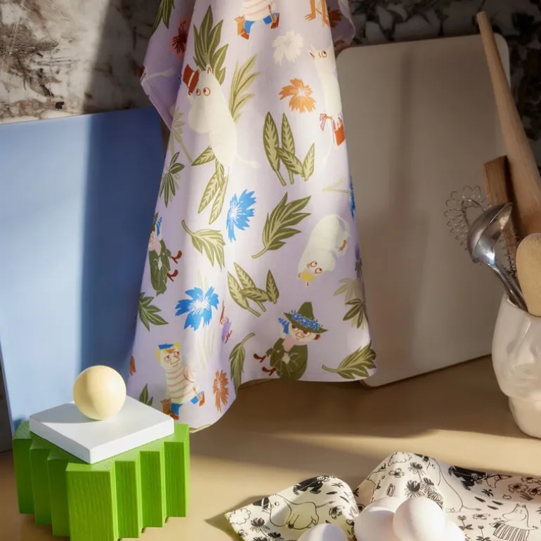 Dette lille Mummi-kjøkkenhåndkleet fra MoominArabia måler 50×70 cm og legemliggjør vårens ankomst til Mummidalen. Mens alle innbyggerne skynder seg ut for å nyte den fantastiske naturen, viser blomsterdetaljene Mummitrollenes sterke bånd til omgivelsene. De klassiske mønstrene er allsidige og passer til hverdagsbruk så vel som til fest, noe som gjør dette håndkleet til et stilig og praktisk tillegg til ethvert kjøkken. Laget av materialer av høy kvalitet, kombinerer håndkleet funksjon med et snev av Moomindale-magi, og bringer en herlig atmosfære til hjemmet ditt.