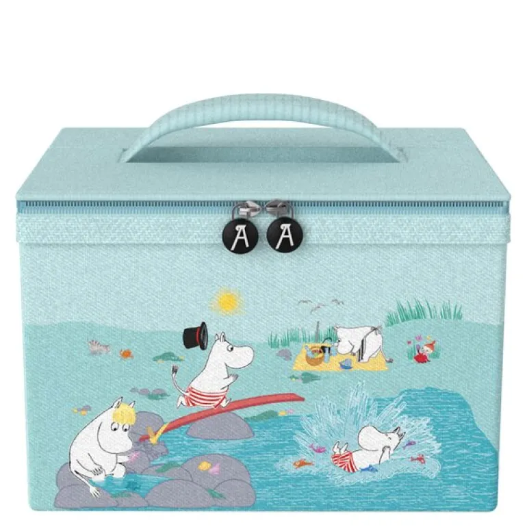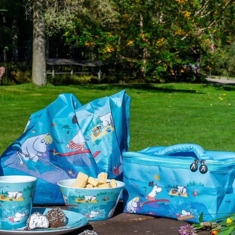 Kjølebag med motiv fra Mummidalen på 4,5L, Playing on the Beach i lyseblått design fra Les Artistes, er en praktisk og kompakt løsning for å holde mat og drikke kaldt på varme dager. Med sitt sjarmerende Mummi-motiv og en kapasitet på 4,5 liter, har den plass til opptil 6 bokser og er perfekt for turer, piknik eller en dag på stranden.
