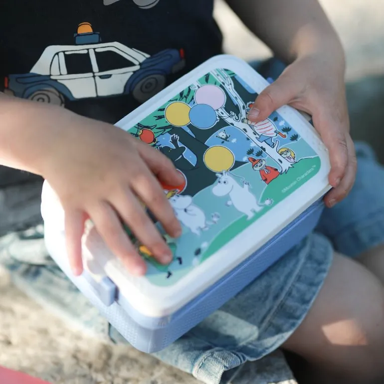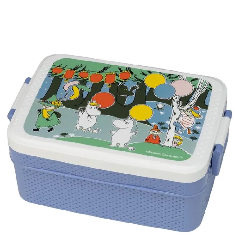 Denne lekne Mummi matboksen Festligheter blå fra Rätt Start kombinerer et sjarmerende design med praktiske løsninger. Med målene 18,5 x 12 cm har den en avtagbar skillevegg som deler boksen i to rom, slik at ulike matvarer holdes adskilt.