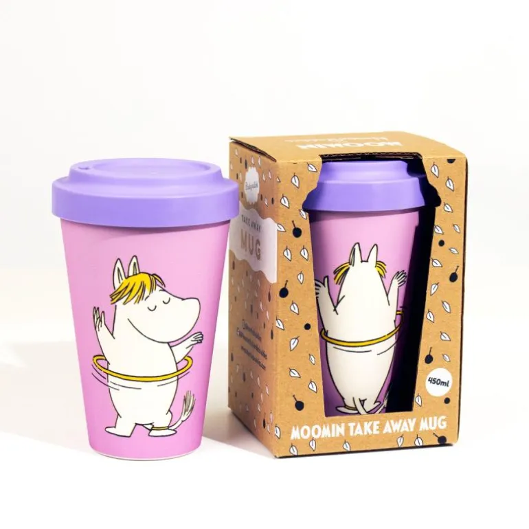 Søtt, rosafarget Mummi takeaway-krus fra Nordicbuddies som holder kaffen eller teen varm! Kruset har ulike illustrasjoner av Snorkfrøkenen som danser og nyter livet.