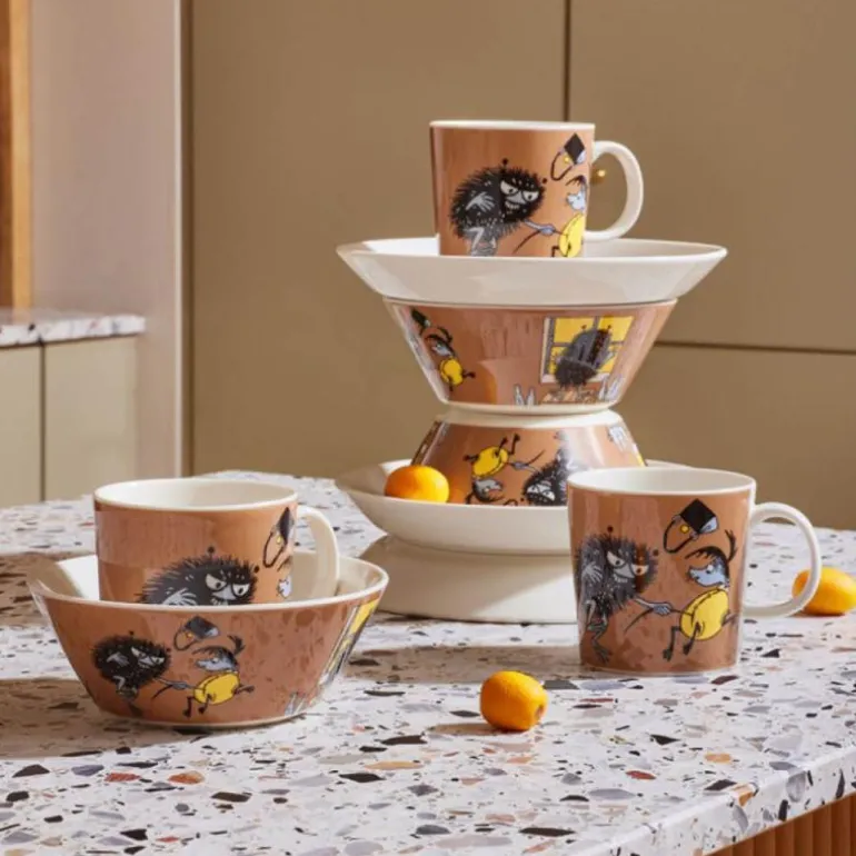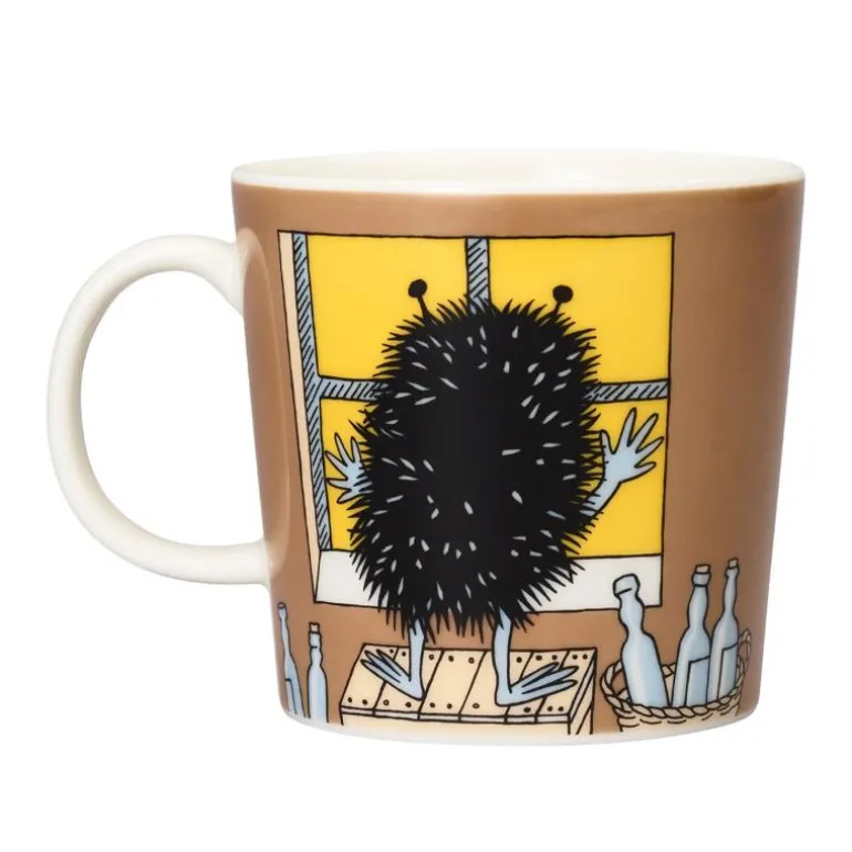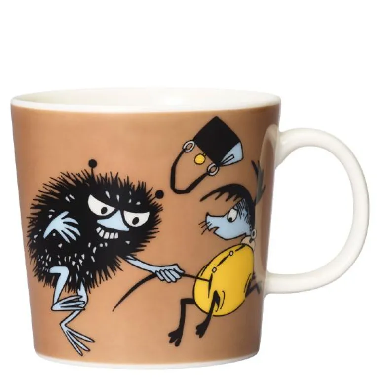 Mummi krus 0,3L Stinky i aksjon. Stinky er skurken i Mummidalen, men er likevel hyggelig. En leken hund løper rundt i Mummidalen, og den har stjålet Mummimammas veske. Stinky griper tak i hundens hale og hunden slipper taket. Mummimamma får vesken tilbake. Moomin by Arabia, krus 0,3l, Stinky i aksjon. Kan vaskes i oppvaskmaskin. Er ildfast og tåler mikrobølgeovn.