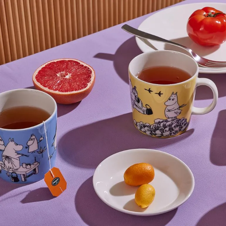 Dette sjarmerende Mummikruset fra Arabia i 0,4 liters størrelse er perfekt for morgenkaffen eller en rolig kveld med te. Kruset har den klassiske Teema-formen og et motiv basert på Tove Janssons originale illustrasjoner, hvor Mummifamilien er samlet rundt kreative aktiviteter – maling, selvportretter og oljemaleri.