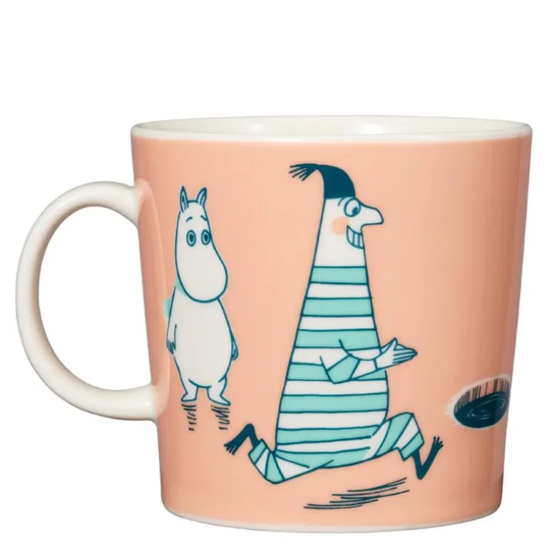 MoominArabia oransje Mummikopp ABC 40 cl med bokstaven E, har et motiv hvor vi møter idrettsentusiasten herr Brisk. Hans endeløse atletiske energi imponerer ikke Mummitrollene, men for Mymlen er det kjærlighet ved første blikk. Illustrasjonen på det større kruset er inspirert av tegneserien Den farlige vinteren.