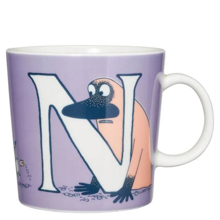 Mummikopp 40 cl N fra MoominArabias ABC kolleksjon. På N kruset ser vi Sniff, Mummitrollet og Samuel som er redde for den ensomme skapningen Hufsa. De har laget en spesiell «foryngelsesdrink», som bl.a. inneholder pepper, honning og vann. Ikke uventet fungerer drinken som en trylledrikk som forvandler alt til det motsatte.