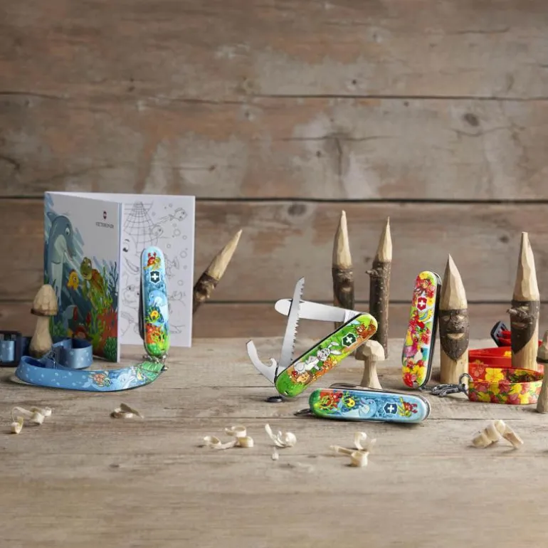 My first Victorinox lommekniv med flamonigo motiv, er tilpasset barn og er en fin gave til for eksempel dåp. Barn er naturlig nysgjerrige. Dette fine lommeknivsettet vil hjelpe dem å utforske og engasjere seg i verden rundt dem. I spennende dyredesign kommer settet med en praktisk nakkestropp og en eventyrfylt fargeleggingsbok inkludert, som også viser barn hvordan de trygt kan bruke knivene sine (med tilsyn av voksne). Hjelp dem å lage minner for livet, fra utskjæring av små figurer til skjærepinner.