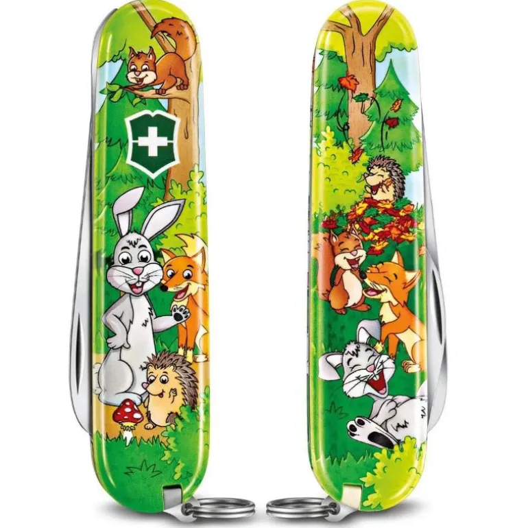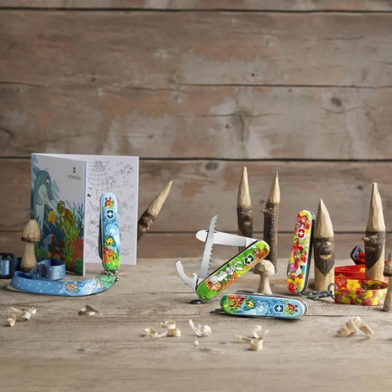 My first Victorinox lommekniv med haremotiv, er tilpasset barn og er en fin gave til for eksempel dåp. Barn er naturlig nysgjerrige. Dette fine lommeknivsettet vil hjelpe dem å utforske og engasjere seg i verden rundt dem. I spennende dyredesign kommer settet med en praktisk nakkestropp og en eventyrfylt fargeleggingsbok inkludert, som også viser barn hvordan de trygt kan bruke knivene sine (med tilsyn av voksne). Hjelp dem å lage minner for livet, fra utskjæring av små figurer til skjærepinner.