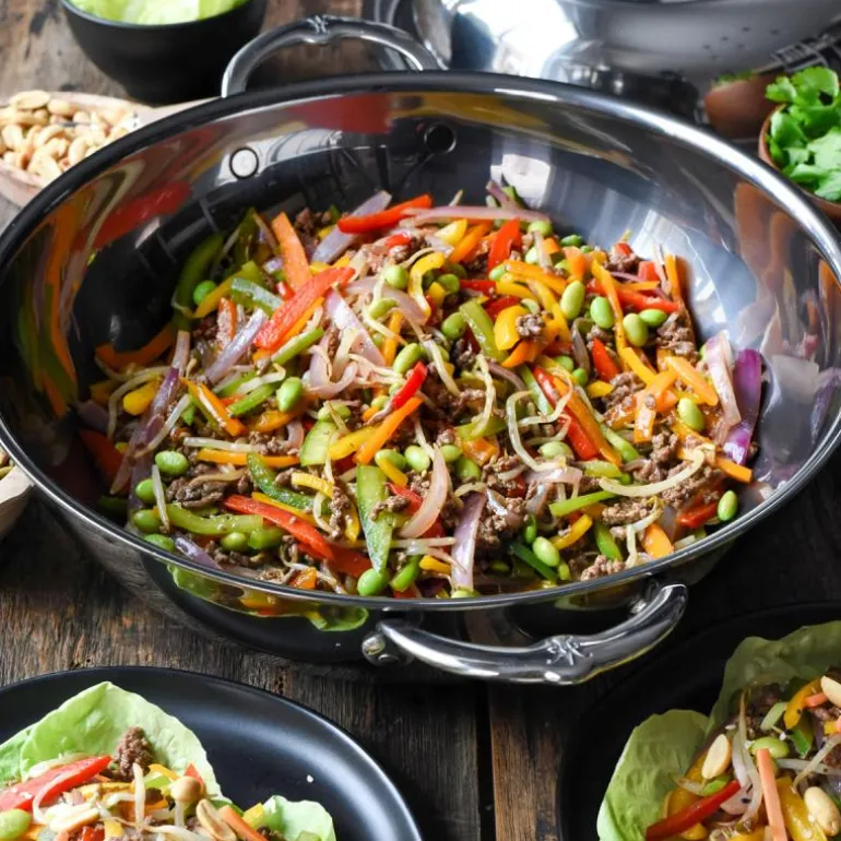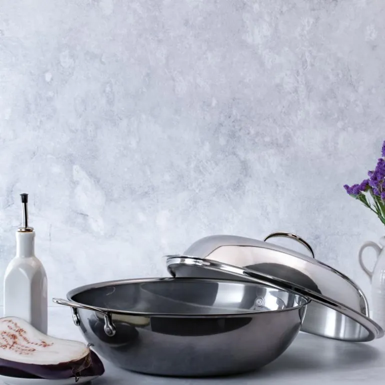 Woken er utstyrt med ergonomiske håndtak for et komfortabelt grep ved matlaging og servering av kulinariske kreasjoner. Det høye kupoldekselet gjør at denne allsidige woken kan brukes til damping, brasering og steking av en hel kylling.