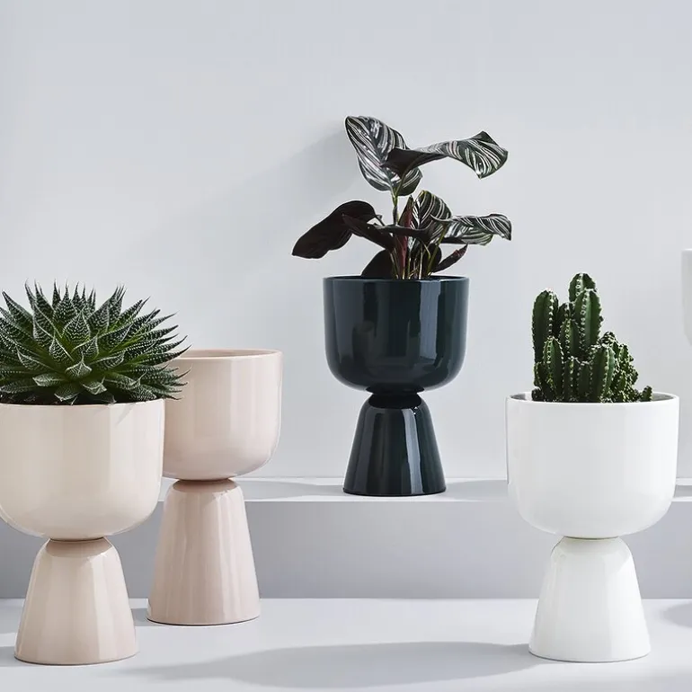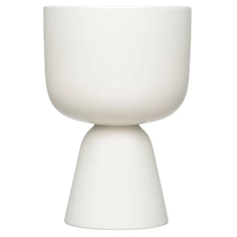 Nappula potteskjuler 230x155mm hvit. Et bords uvanlige form og hovne ben var designer Matti Klenells inspirasjon for Nappulas signatur-silhuett. Nappula potteskjuler er nå en moderne nordisk designklassiker med sitt flytende, buede design. Viser planter vakkert i ethvert interiør og lar deg bringe et stykke natur inn. Flott alene eller i gruppe. Kommer i flere farger og størrelser. Designer Matti Klenell. Håndvask anbefales.