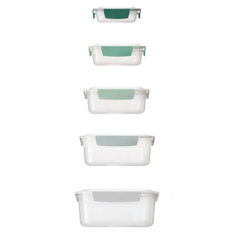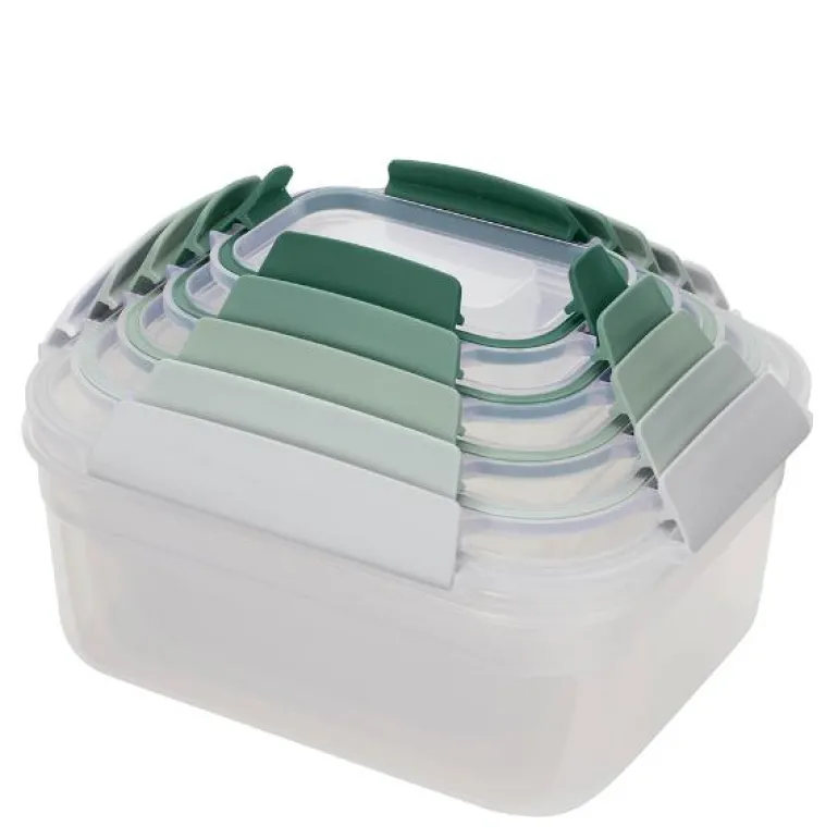 Nest lock sage oppbevaringsbokser 5 stk fra Joseph Joseph er et praktisk sett med fem oppbevaringsbokser komplett med lokk. Den unike designen gjør at boksene kan stables, og lokkene klikker sammen for effektiv og plassbesparende oppbevaring. Lokkene er lekkasjesikre, slik at du kan transportere maten uten bekymring for søl.
