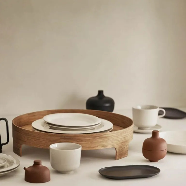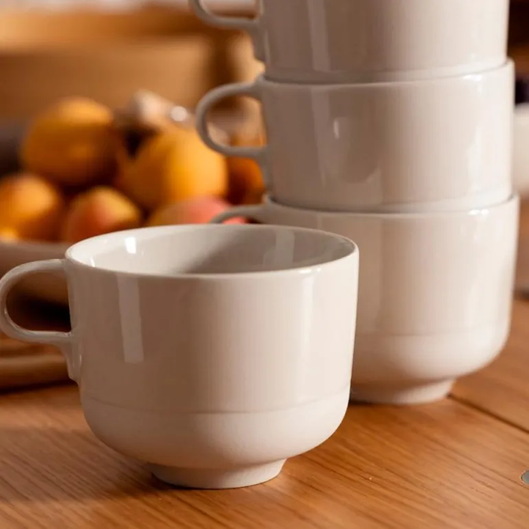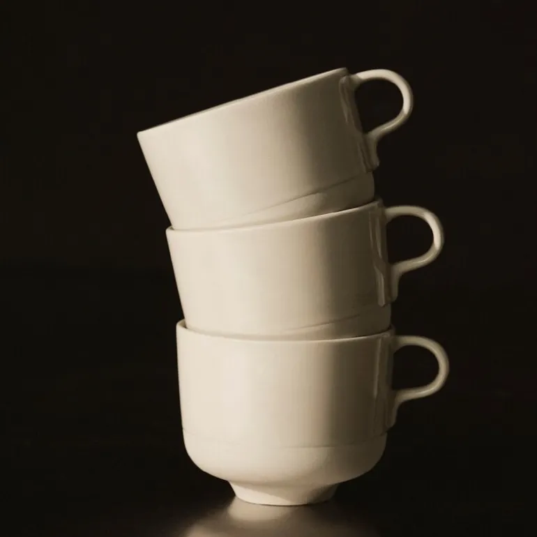 Former og finish er myke, og hver enkelt del kan brukes på forskjellige måter — kopp uten håndtak fungerer like godt som bolle, og bollen kan brukes til å servere en suppe eller fungere som en tallerken.