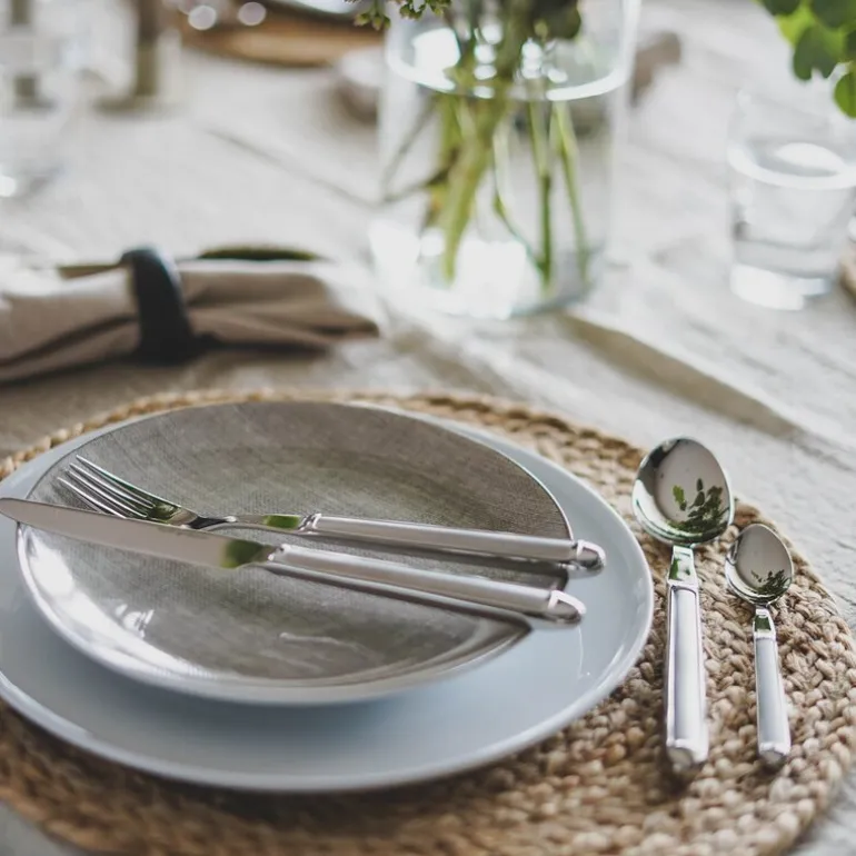 Settet inneholder seks spisekniver (22 cm), seks spisegafler (21 cm), seks spiseskjeer (21 cm) og seks teskjeer (14,1 cm), alt laget i 18/10 rustfritt stål som er både holdbart og oppvaskmaskinsikkert.