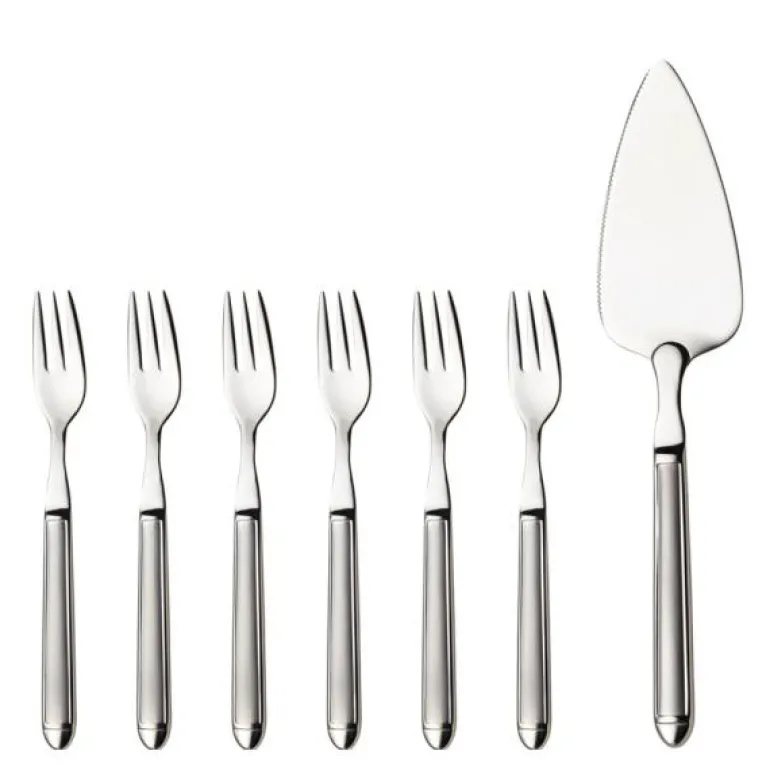 - Settet inneholder:6 x kakegafler 17,3 cm1 x kakespade 26 cm