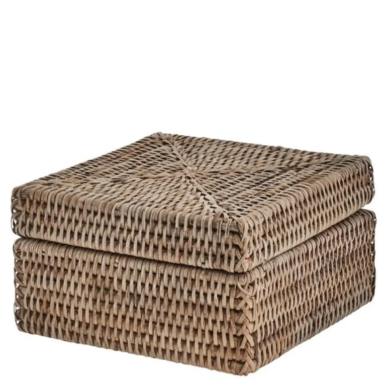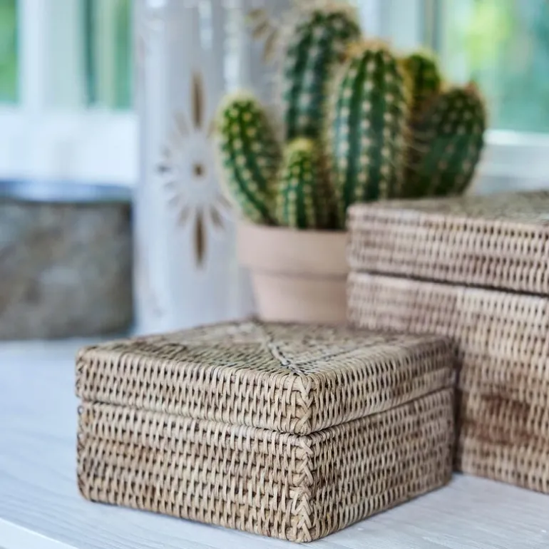 Norah oppbevaringsboks med lokk 18 x 18 cm fra Lene Bjerre er en vakker og funksjonell oppbevaringsløsning laget av håndvevd rotting. Oppbevaringskurven kombinerer naturlige materialer med et tidløst design, noe som gjør den til et dekorativt og praktisk tillegg til ethvert hjem.