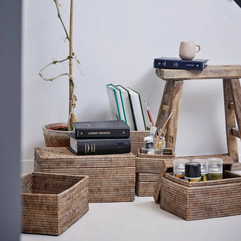 Perfekt til oppbevaring av småting i stuen, på soverommet eller badet, samtidig som den tilfører en organisk og varm følelse til interiøret. Norah-serien er kjent for sin bruk av rotting og bambus – materialer som vokser raskt og gir en solid, men lett konstruksjon.
