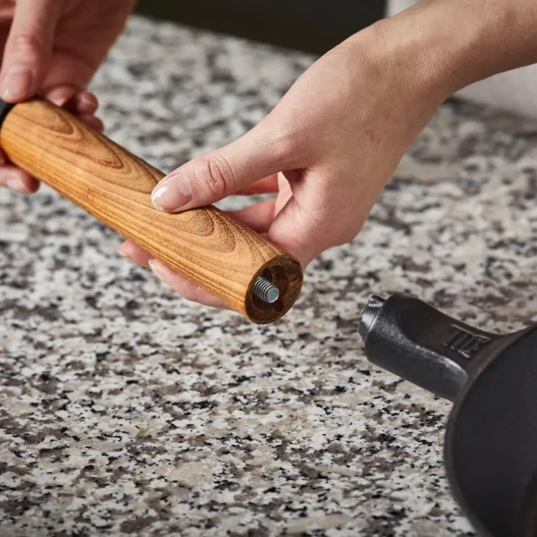 Inspirert av nordisk natur og tradisjoner. Støpejern holder ekstremt godt på varmen noe som gjør stekepannene perfekte til bruning av mange ulike typer råvarer. Det unike mineralske Thermium-belegget gir produktet suverene non-stick egenskaper selv ved meget høye temperaturer, samtidig som det er mye enklere å rengjøre. Tredetaljene i finsk varmebehandlet bjørk kan fjernes under bruk, og brukes som gryteunderlag. Designet i Finland.