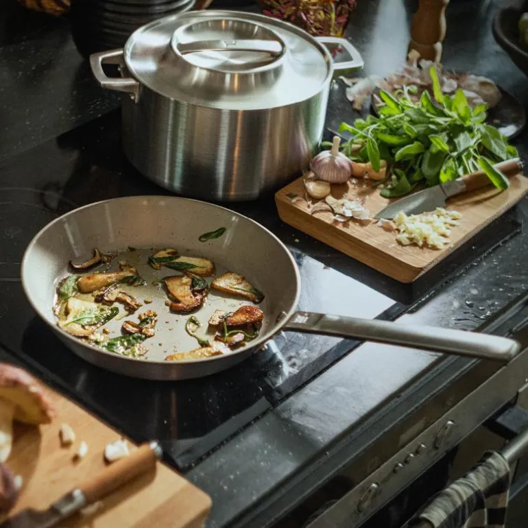Stekepannen er utstyrt med Ceratec™ non-stick belegg kombinert med den mineralske Thermium™-behandlingen, som gir fremragende non-stick egenskaper selv ved høye temperaturer. Dette gjør matlaging enklere og gir perfekte resultater, samtidig som det bevarer det elegante, rustfrie ståldesignet. Belegget er også fri for PFAS, noe som gjør pannen til et tryggere valg for både deg og miljøet.