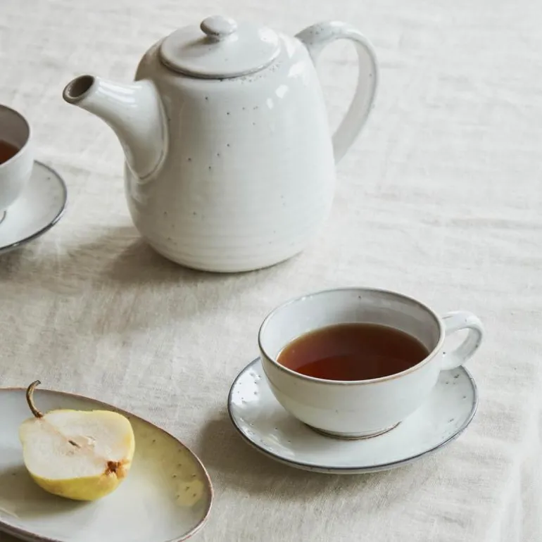 Liten tekanne 70 cl, i Nordic Sand serien fra Broste Copenhagen. Denne fine størrelsen er ypperlig til én person.Bruk tekannen alene, eller kombiner den gjerne med de andre deler i den flotte Nordic Sand serien. Tekannen kan med fordel også brukes i en herlig avslappet miks av de andre populære serivsene fra Broste Copenhagen. Mål:Bredde: 11 cmLengde: 17,5 cmHøyde: 12,5 cmNordic Sand har et organisk design i naturlige sandnyanser for et mykt og allsidig utseende. Fargen på glasuren kombinert med en distinkt keramisk finish, gir kolleksjonen et unikt uttrykk som minner om den uberegnelige sanden til de forblåste nordiske strendene. Designet er enkelt, rustikt og unektelig iøynefallende. Hver del har en unik kvalitet, ettersom brenningsprosessen etterlater glasuren med varierende teksturer og farger.