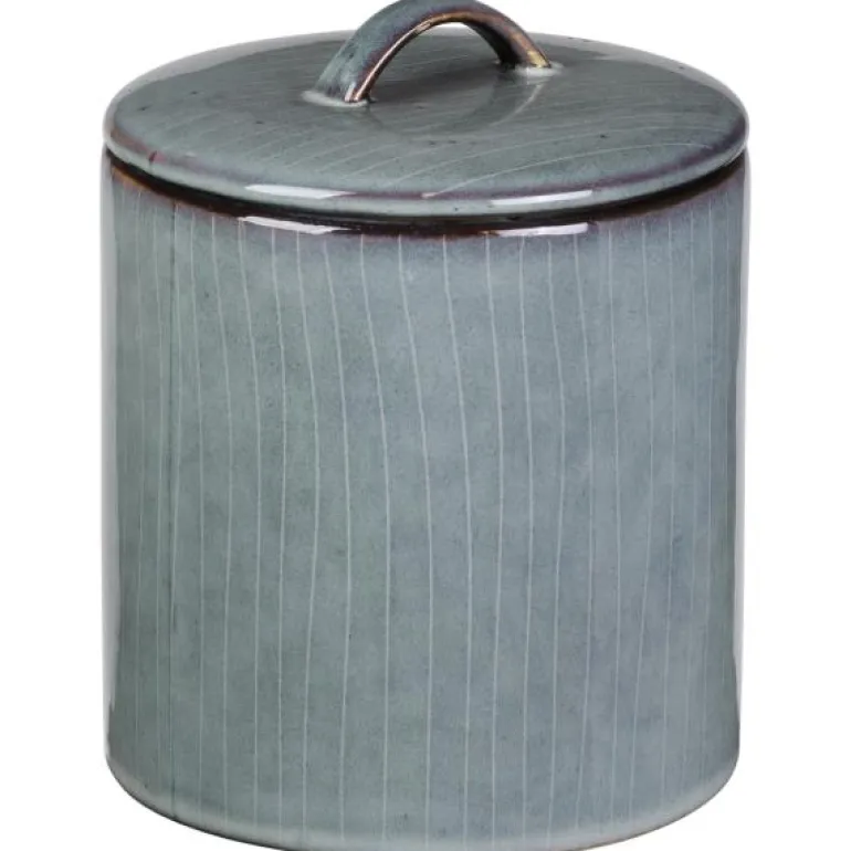 Dekorativ krukke med lokk 1 liter, i Nordic Sea serien fra Broste Copenhagen. Kombiner gjerne den fine krukken sammen med andre deler i den flotte Nordic Sea serien. Den kan med fordel også brukes i en herlig avslappet miks av de andre populære serivsene fra Broste Copenhagen. Nordic Sea er den mest kjente og populære serien fra Broste Copenhagen. Fargeskalaen i serien fanger opp fargene i Nordsjøen på en stormfull dag. Det unike utseendet oppstår ved at delene har blitt glasert og deretter brent under jorden. Fordi alle delene reagerer forskjellig på denne prosessen får alle produkter unike uttrykk både når det gjelder farge og struktur. Tåler oppvaskmaskin. Tåler mikrobølgeovn.