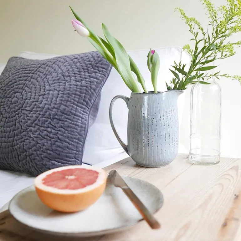 Stor melkekanne 100 cl i Nordic Sea serien fra Broste Copenhagen. Bruk gjerne den store kannen alene eller sammen med de andre servisedelene i den flotte Nordic Sea serien. Kannen kan med fordel også brukes i en herlig avslappet miks av de andre populære serivsene fra Broste Copenhagen. Nordic Sea er den mest kjente og populære serien fra Broste Copenhagen. Fargeskalaen i serien fanger opp fargene i Nordsjøen på en stormfull dag. Det unike utseendet oppstår ved at delene har blitt glasert og deretter brent under jorden. Fordi alle delene reagerer forskjellig på denne prosessen får alle produkter unike uttrykk både når det gjelder farge og struktur. Tåler oppvaskmaskin. Tåler mikrobølgeovn.