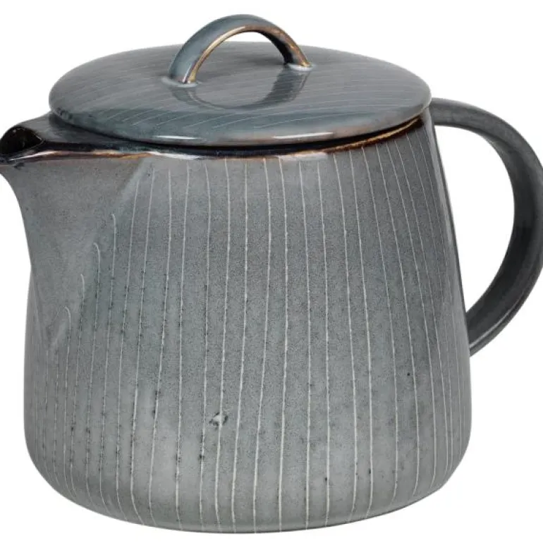 Tekanne 100 cl i Nordic Sea serien fra Broste Copenhagen. Bruk gjerne tekannen alene eller kombiner den sammen med de andre servisedelene i den flotte Nordic Sea serien. Kannen kan med fordel også brukes i en herlig avslappet miks av de andre populære serivsene fra Broste Copenhagen. Nordic Sea er den mest kjente og populære serien fra Broste Copenhagen. Fargeskalaen i serien fanger opp fargene i Nordsjøen på en stormfull dag. Det unike utseendet oppstår ved at delene har blitt glasert og deretter brent under jorden. Fordi alle delene reagerer forskjellig på denne prosessen får alle produkter unike uttrykk både når det gjelder farge og struktur. Tåler oppvaskmaskin. Tåler mikrobølgeovn.