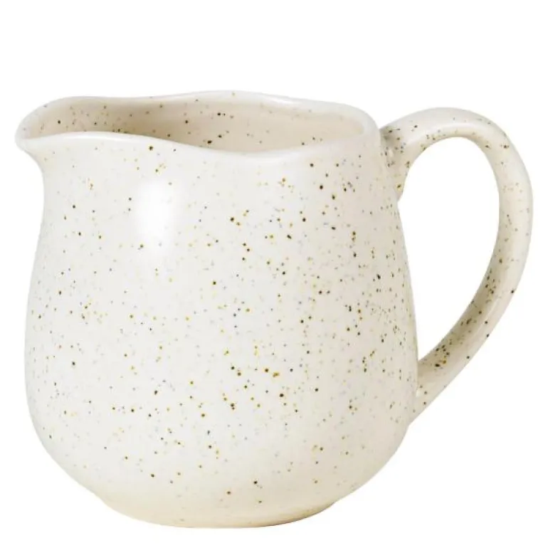 Melkekanne 30 cl i Nordic Vanilla serien fra Broste Copenhagen. Bruk den lille melkekannen alene, eller kombiner den gjerne med de andre servisedelene i den flotte Nordic Vanilla serien. Kannen kan med fordel også brukes i en herlig avslappet miks av de andre populære serivsene fra Broste Copenhagen. Spettet som vaniljemelk; den glatte, men matte overflaten, med små svarte prikker som minner om vaniljekorn, kjennetegner Nordic Vanilla. En servisekolleksjon, fra Broste Copenhagen som stammer fra de populære nordiske linjer og hengivenhet til vakker glasur og sammenhengende design.Hver del av serviset innehar egenskapene til det skandinaviske designet ved å skape en rolig og innbydende estetikk rundt ethvert måltid. Alle delene i Nordic Vanilla serien er glasert for hånd, og da glasuren reagerer på skiftene under prosessen kan variasjon i farge og form forekomme. Dette gjør ethvert produkt helt unikt. Skap en klassisk borddekning med lyse og luftige off-white nyanser og gi bordet et tidløst rolig uttrykk eller kombiner Nordic Vanilla med deler fra andre serviseserier for en borddekking som føles samlet og kuratert med en unik identitet.