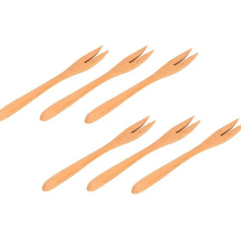 Sett av 6 små gafler som er perfekt til pålegg og tapas. Produsert av bambus. Bambus er bærekraftig, hardfør og ikke minst – vakkert. Behandlet med en matt mineralolje. Rengjøres med en fuktig klut og tørkes godt av. For best vedlikehold, anbefaler vi å smøre produktet med litt matolje.