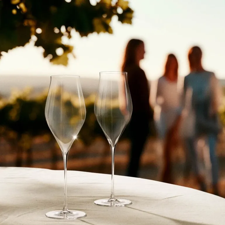 Champagneglassets form er nøye utformet med en bred åpning for å la champagnen utvikle seg, samtidig som den innsnevrede toppen leder aromaene direkte mot nesen for en optimal duftopplevelse. Den buede bunnen danner en vakker streng av bobler som stiger opp gjennom glasset og gir en følelse av luksus. Med settet på to glass har du både funksjonalitet og eleganse til enhver anledning, og Holmegaard Notes løfter opplevelsen til et nytt nivå.