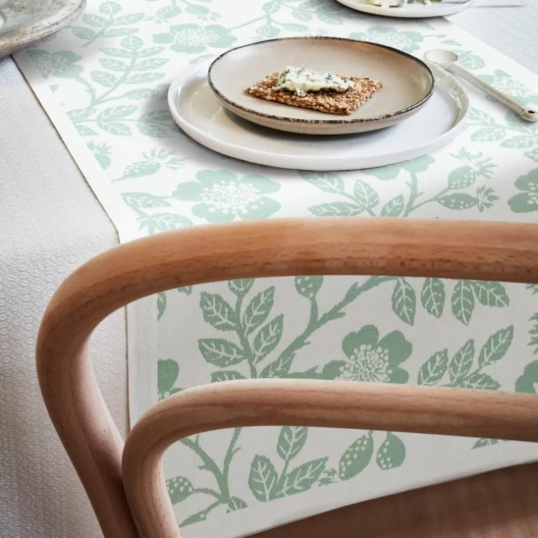 Nyponros bordløper fra Ekelund tilfører borddekkingen et naturlig og elegant preg med sitt vakre nyperosemotiv i grønne toner. Med målene 35×120 cm passer den perfekt både på langs og på tvers av bordet, enten alene eller over en duk for å skape dybde og variasjon. Det stilrene designet gjør løperen enkel å kombinere med ulike serviser og dekorasjoner.