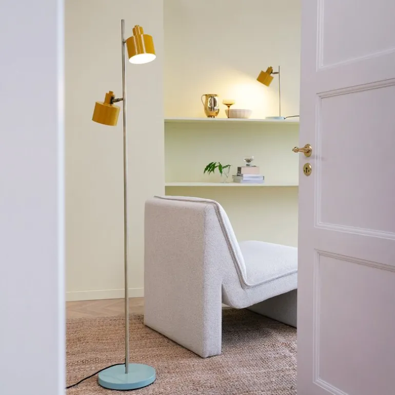 Ocean gulvlampe fra Dyberg Larsen er en sofistikert hyllest til 1950-tallets design, kombinert med moderne detaljer som gjør den til en favoritt i ethvert hjem. Med sin høyde på 160 cm og den livlige fargekombinasjonen av curry, messing og turkis, tilfører lampen et retro-preg som skaper varme og personlighet i rommet. Den slanke formen og enkle linjene gir et elegant uttrykk som passer inn i ulike interiørstiler.