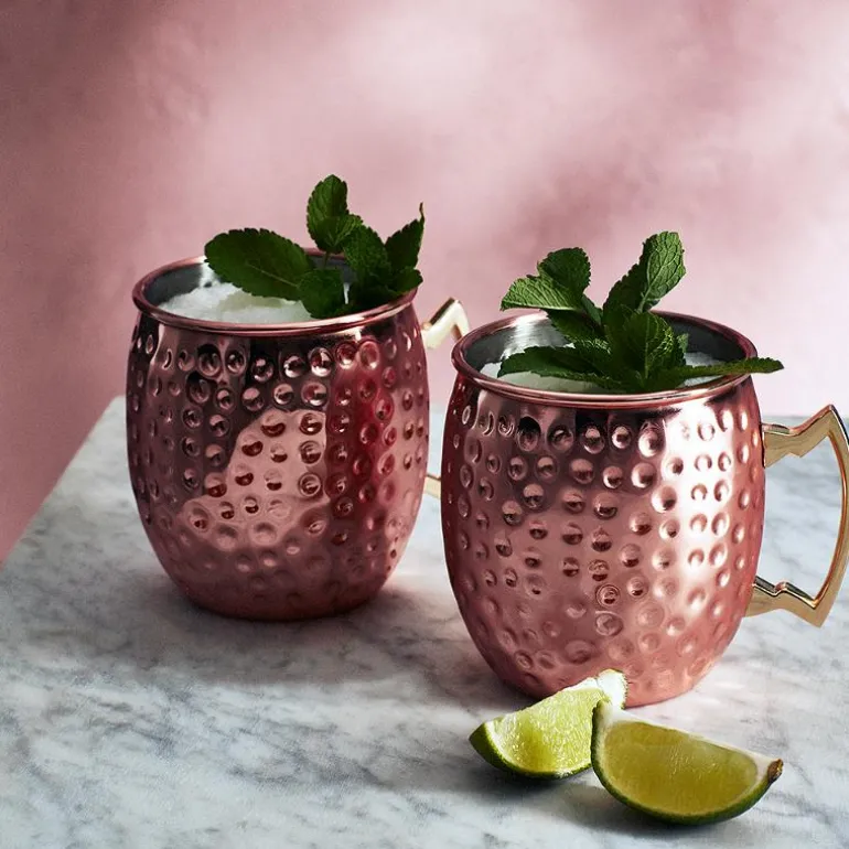 Imponer venner og familie med å servere drinker i Oliver Copper Cups. Disse stilige kobberbelagte kopper i hamret design er spesielt utviklet for en Mule cocktail.