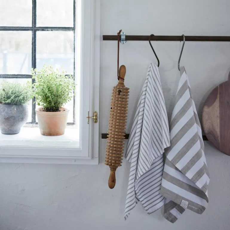 Olivia kjøkkenhåndkle 70×50 cm hvit/sand, fra Lene Bjerre. Olivia kjøkkenhåndkle bringer tidløs eleganse til ditt kjøkken. Laget av 100 % bomull av høy kvalitet, utstråler håndkleet sofistikasjon med sine delikate striper i en klassisk fargekombinasjon av off-white og hvit. Den enkle, men stilfulle designen sørger for at Olivia-håndkleet alltid vil være moteriktig.