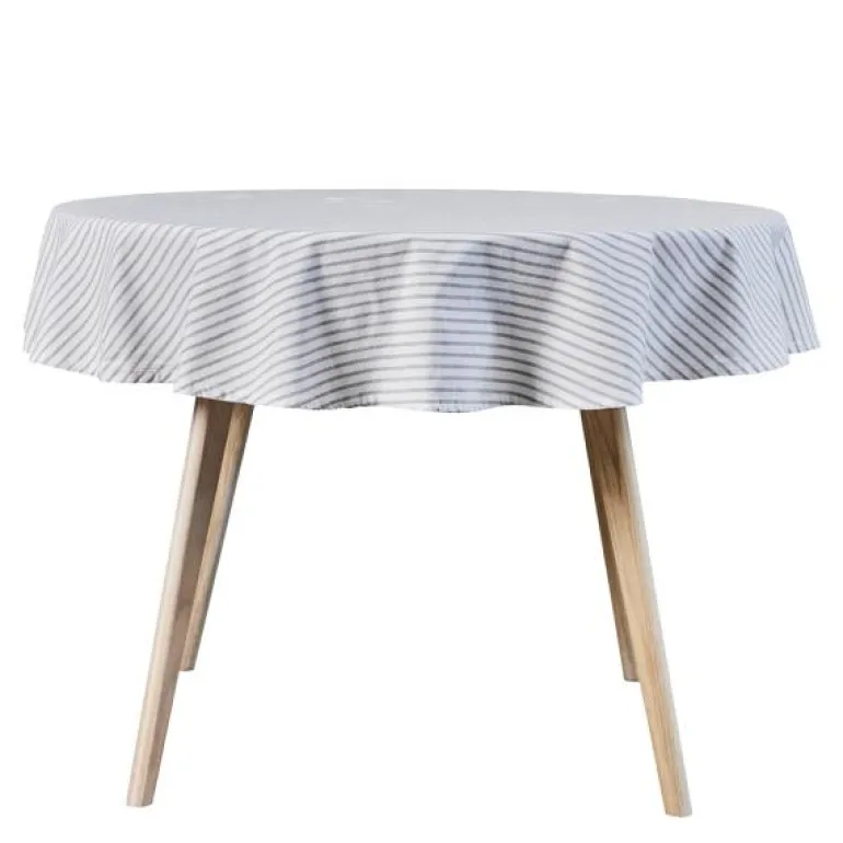 Olivia rund duk 140 cm hvit, fra Lene Bjerre. Denne flotte duken fra Olivia-serien måler 140 cm. Olivia-duken er ideell for både formelle og uformelle sammenkomster, og dens klassiske stripete mønster gir et tidløst og elegant utseende som hever enhver borddekking.