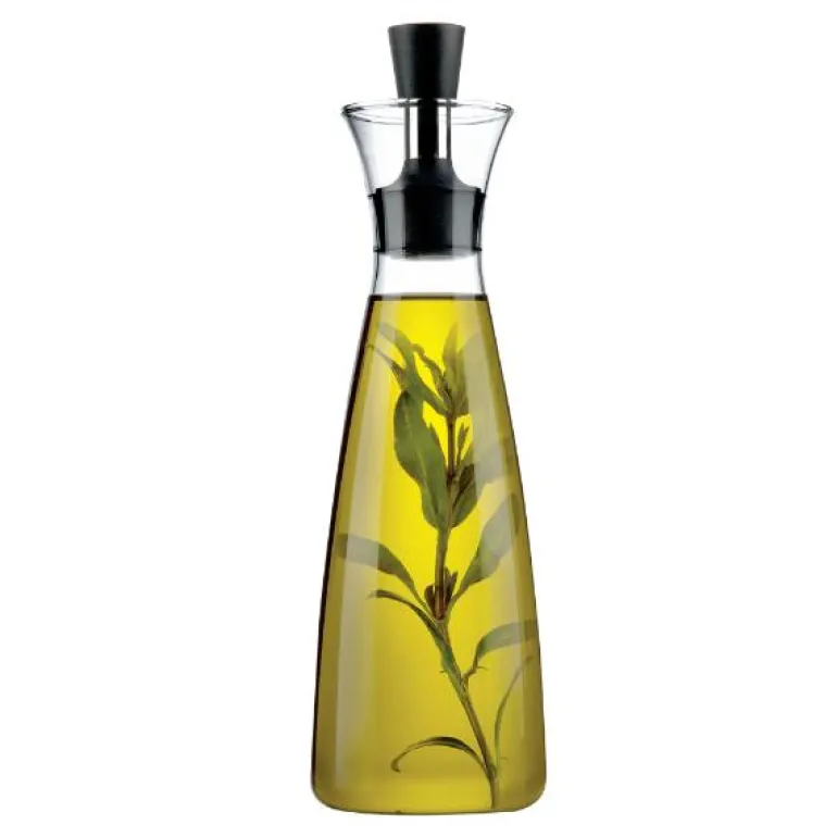 Denne elegante oljekaraffelen/eddikkaraffelen fra Eva Solo kombinerer smart design med praktisk funksjon. Med en kapasitet på 50 cl gir den rikelig med plass til både olje og eddik, og den dryppfrie helletuten gjør det enkelt å servere uten søl. Karaffelen er laget av borosilikatglass, et slitesterkt materiale som tåler både varme og kulde. Tilsett friske urter eller krydder for å skape en unik smak direkte i karaffelen.