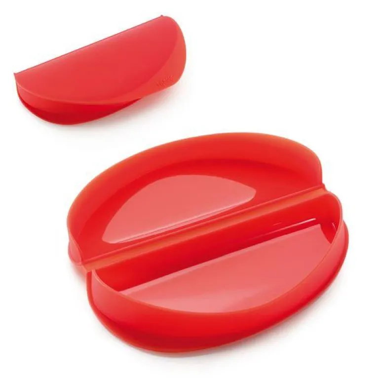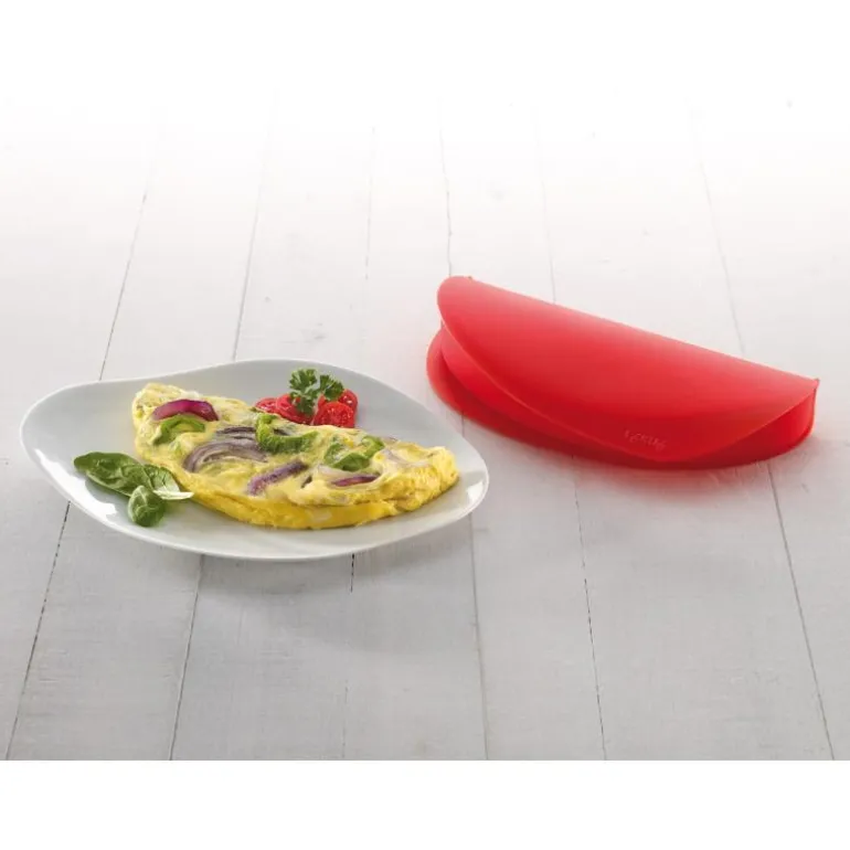 Omelettform til mikrobølgeovn rødOmelettformen fra Lékué kan brukes til å lage omeletter til en person i mikrobølgeovnen, uten bruk måtte bruke fett eller olje. Omeletten trenger bare få minutter i mikroovnen og kan brukes med forskellige typer fyld. Omelettformen gjør at man lettvint og hurtig kan få et sunt måltid. Omelettformen er lett å bruke og det følger også med en bruksansvisning, så man får best mulig resultat. Omelettformen rommer 250 ml og kan både tåle mikrobølgeovn, ovn, kjøleskap og oppvaskmaskin. Omelettformen er laget i 100 % platinsilikone og er BPA-fri. Omelettform: lengde 230 mm, bredde 100 mm og høyde 35 mm