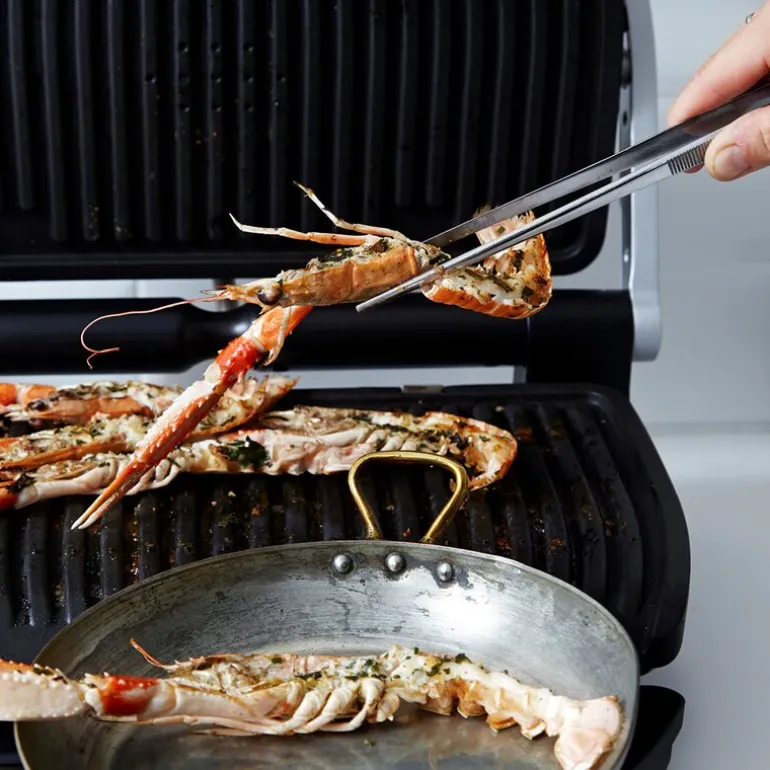 OptiGrill XL er en unik innovasjon som ved hjelp av avansert teknologi gir et perfekt grillresultat hver gang. En innebygget sensor leser av tykkelsen på kjøttet og justerer automatisk tid og temperatur deretter. Indikatoren angir kjøttets tilberedningsgrad, fra rødt til gjennomstekt. 9 automatiske programmer for ulike råvarer; hamburger, fugl, panini, pølse, oksekjøtt og fisk, skalldyr, svinefilet og bacon. Manuell funksjon med fire temperaturinnstillinger for grilling av frukt og grønnsaker. 800 cm² grillflate, passer for 6-8 personer. Indikatoren viser når grillen er klar til bruk. Avtakbare grillplater med non-stick belegg som tåler oppvaskmaskin.