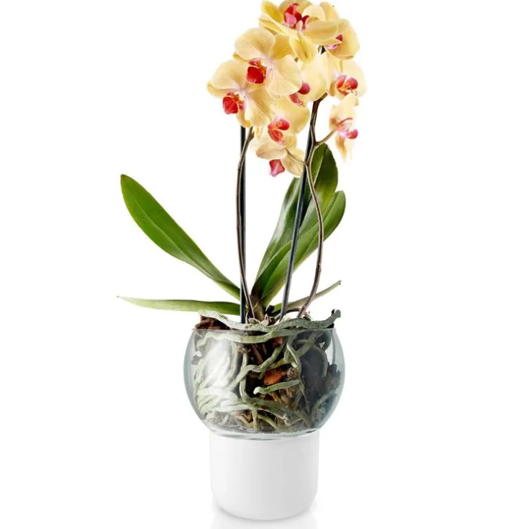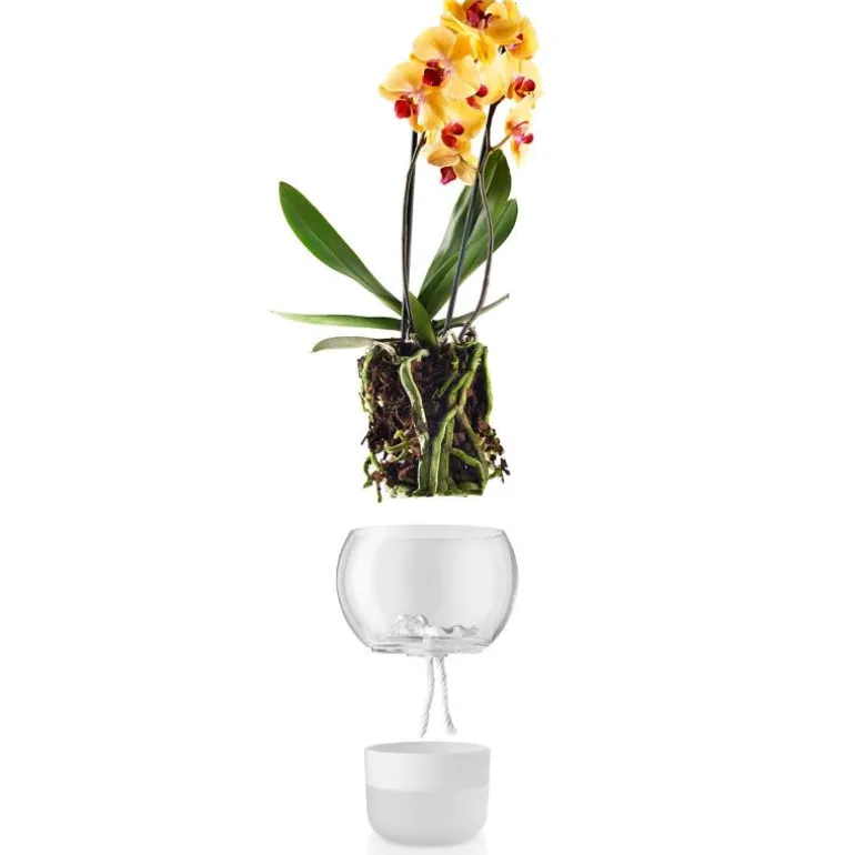 Orkidépotten har et selvvanningssystem som gjør det enkelt å holde orkidéene vakre og friske uten å måtte passe dem hele tiden. Potten gir orkidéene optimale vekstbetingelser ved hjelp av nylonveker i bunnen av øverste potte og en vannbeholder i nederste potte, slik at orkidéene kan suge til seg den mengden vann den trenger. Alle delene av orkidépotten er laget av glass, siden mange orkidéer tar opp sollys med røttene og ikke bare med bladene. Potten sikrer dessuten at orkidéens røtter ikke kommer i direkte kontakt med vann og råtner. Orkidépotten er lett å holde ren og tåler oppvaskmaskin.