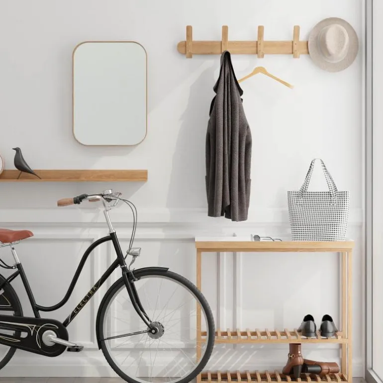Rammen er laget av amerikansk hvit eik og eikefiner, valgt for sin varme farge, vakre åremønster og tradisjonelle hardtre holdbarhet. Alle kanter ser skarpe ut, men er forsiktig håndslipt for å gjøre dem myke å ta på. Utført med en matt, vannavstøtende lakk. Enkel nøkkelhullsinstallasjon med skjulte fester gir et sømløst utseende.