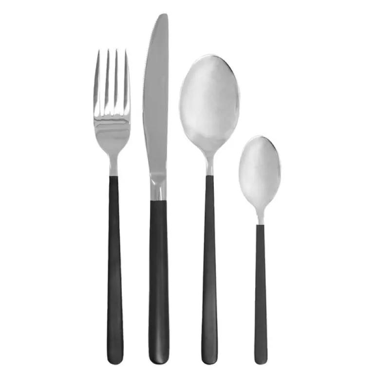 Ox bestikksett 16 deler fra House Doctor forener det klassiske og det moderne i én og samme design. Laget av rustfritt stål og dekorert med sorte og sølvfargede detaljer, gir det en spennende kontrast til både lyse og mørke serviser.